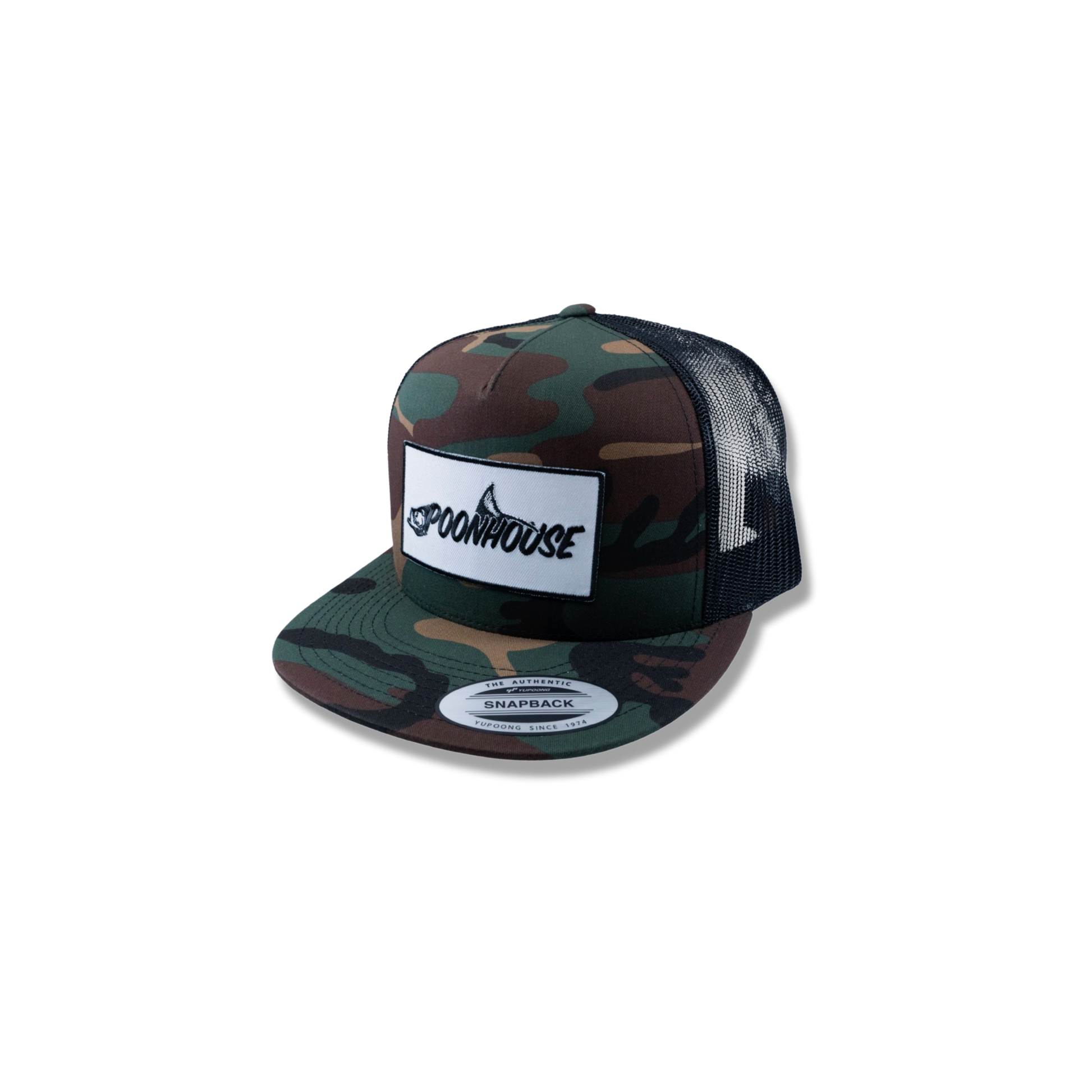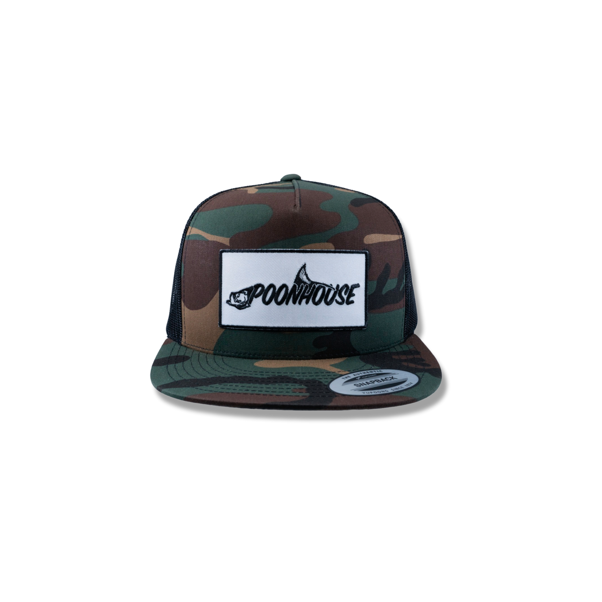 Army Camo Yupoong Flat Bill with White Patch