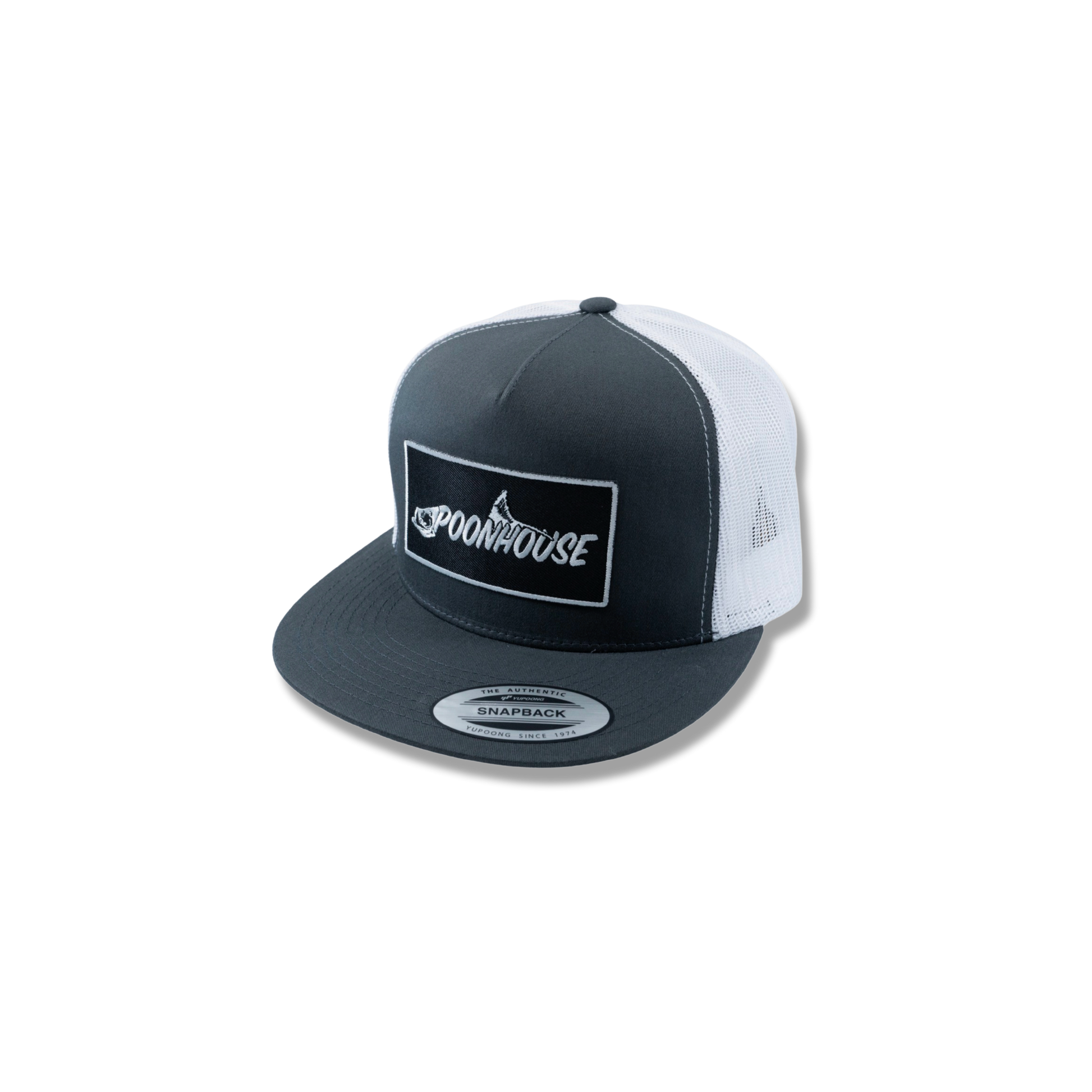 Charcoal & White Yupoong Flat Bill with Black Patch