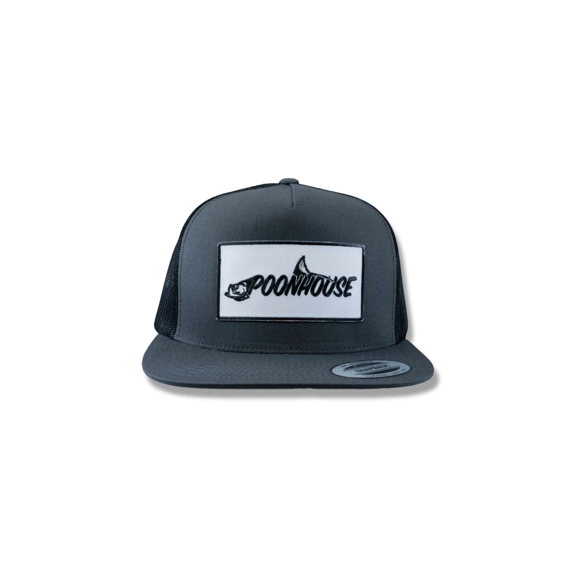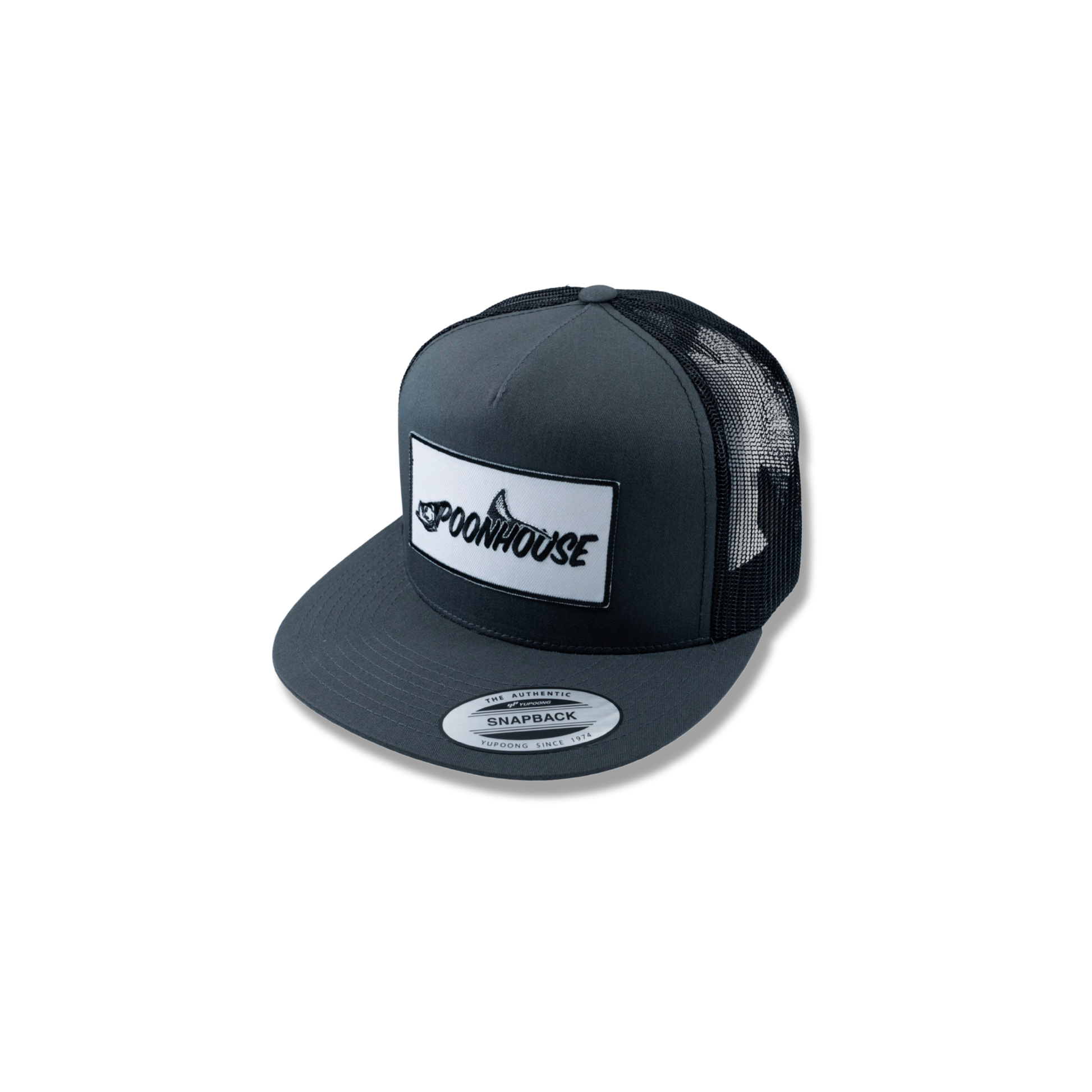 Charcoal & Black Yupoong Flat Bill with White Patch