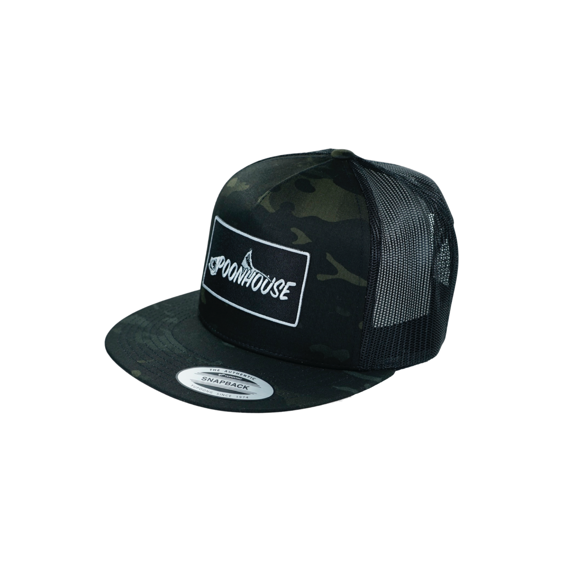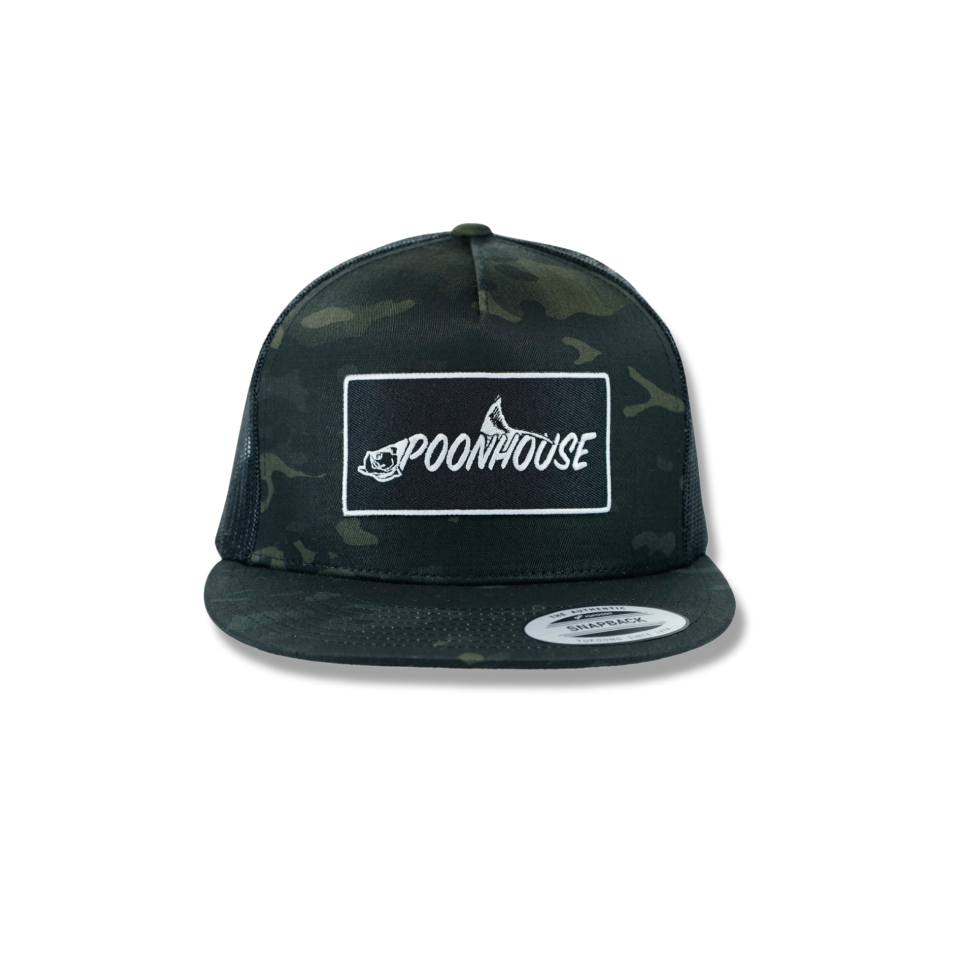 Dark Camo Yupoong Snapback Flat Bill with Black Patch